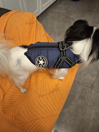 Elevate your dog’s outdoor experience with the Navy Blue Dog Coat with Built-In Harness. This thoughtfully designed coat ensures your pet stays warm and secure during walks, no matter the weather. The coat’s integrated harness feature makes outings seamless, eliminating the need for separate harnesses. With a sophisticated navy blue hue, this coat is as fashionable as it is functional. Made with a cozy, insulated lining and a water-resistant exterior, it keeps your dog comfortable on chilly or rainy days.